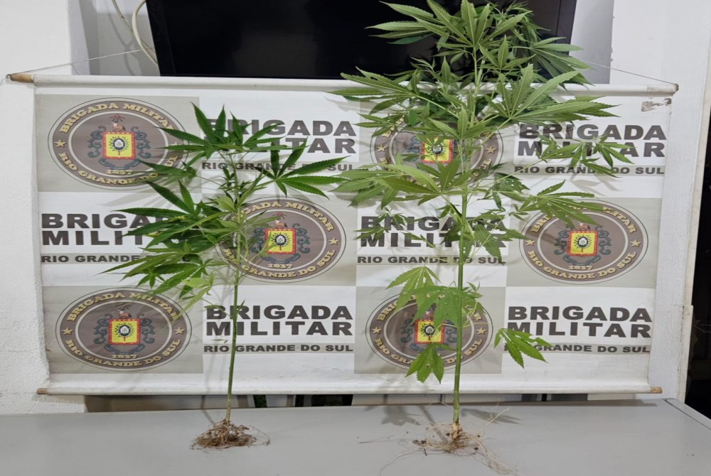 Durante a ação policial, foram apreendidos dois pés de maconha e um telefone celular, materiais que estariam relacionados à prática do crime.